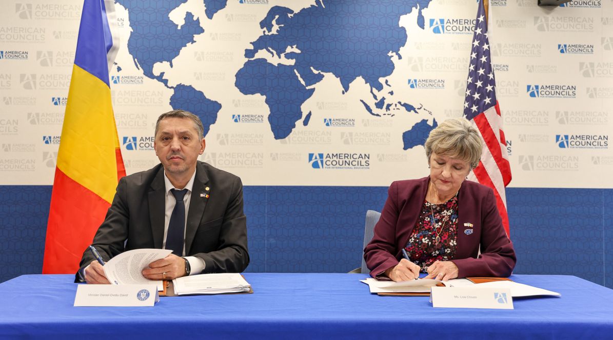 ministrul Educatiei, Daniel David, a semnat noul acord pentru derularea programelor FLEX - Future Leaders Exchange pentru Romania si FLEX Abroad (in Romania), in cadrul ceremoniei organizate de American Councils for International Education (ACIE).