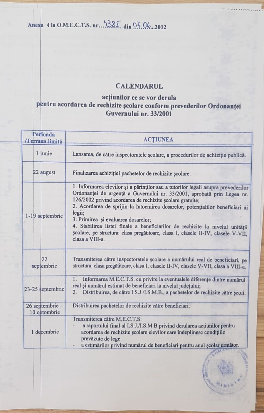 Calendar acordare rechizite scolare gratuite 2025-2026