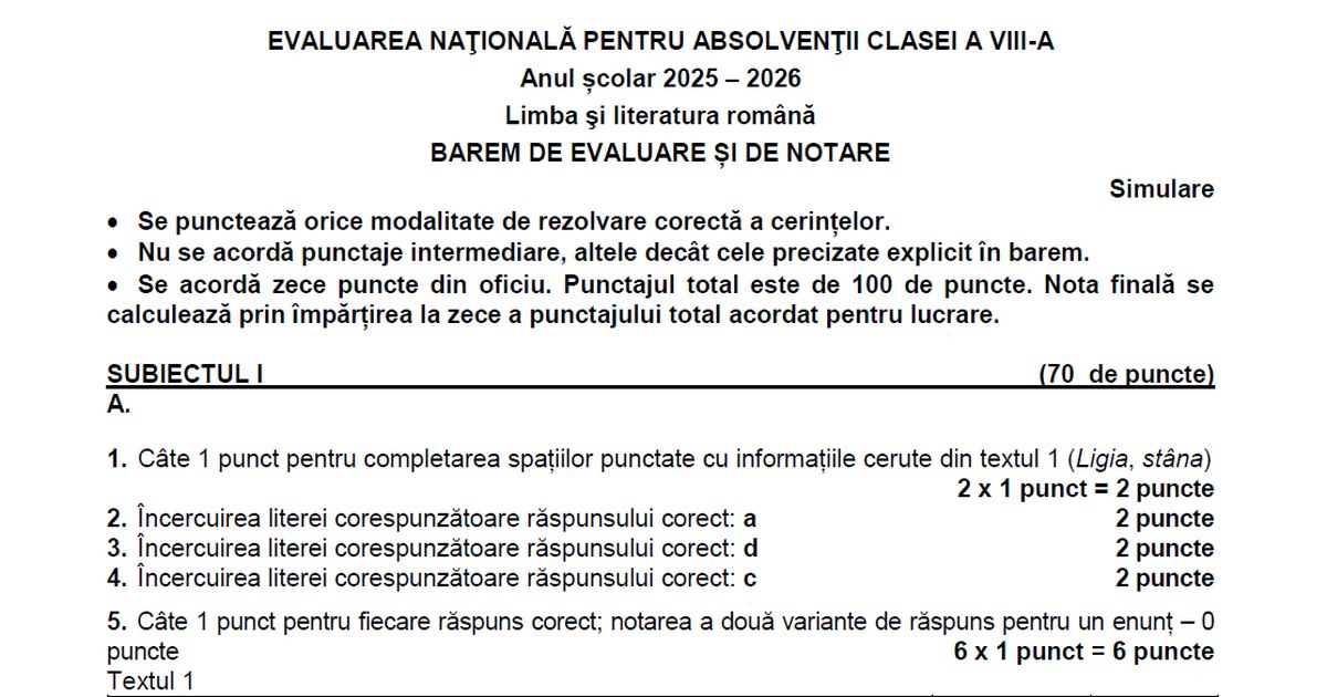 Baremul de corectare la Simularea la Romana la clasa a VIII-a a fost publicat la ora 15:00. Evaluarea lucrarilor scrise de elevii participanti se realizeaza digitalizat, prin intermediul unei platform... Citeste articolul